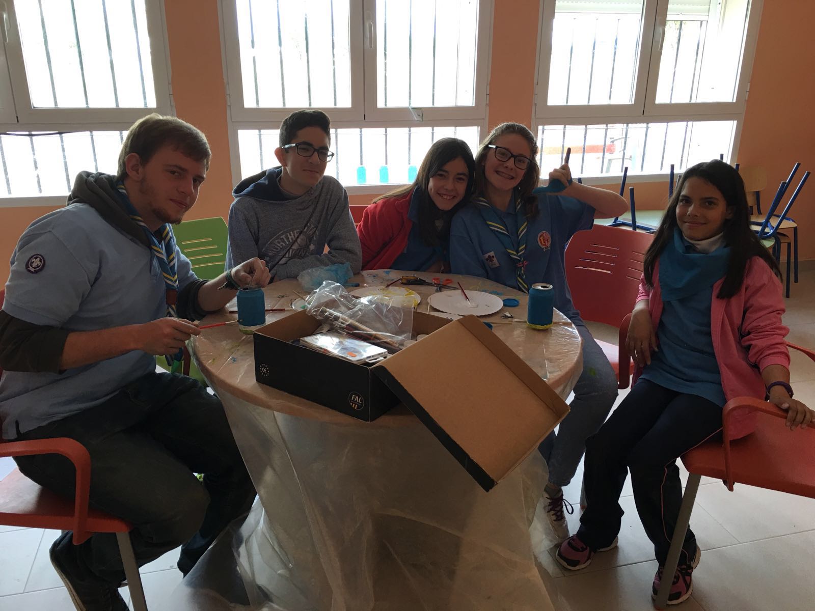 Su actividad consistió en pintar latas con los colores de la pañoleta y dibujar el Pentágono de tropa. Gracias a ella, se trabajó el reciclaje y la simbología.